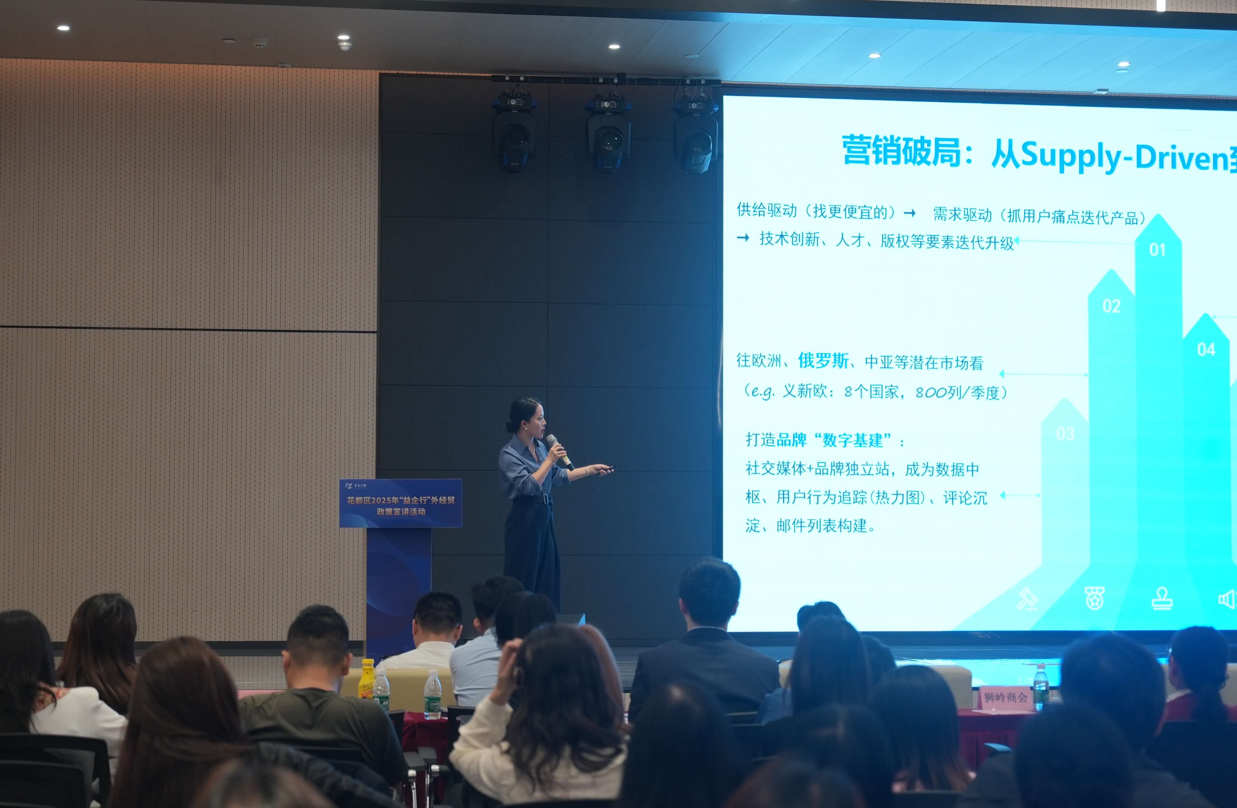 4月9日下午,由广州市商务局指导,花都区商务局、花都海关、花都区税务局联合举办“向新而行・开放共赢”花都区“益企行”外经贸政策宣讲活动会,吸引了全区200余家外贸企业参加。作为头部出海营销企业,易海创腾CMO李姗受邀发表《跨境3.0时代:从流量破局到品牌长青》主题演讲,与现场嘉宾共同探讨在国际关税形势变化的背景下,企业如何通过营销破局,实现品牌可持续发展。