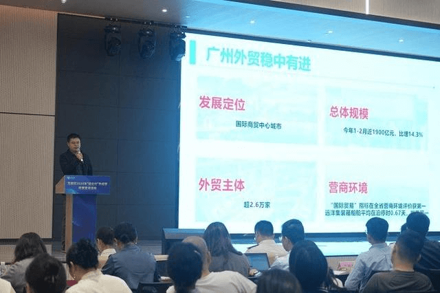 广州市商务局姚志康科长进行《广州市进一步推动外贸保稳提质政策》宣讲,重点介绍了当前广州市商务局出台的关于助力外贸企业开拓国际市场的政策,包括境外展会、广交会、外贸企业数字化转型等相关支持政策。这些政策旨在积极推动广州市外贸增长,加快外贸新业态发展,构筑国际竞争新优势。