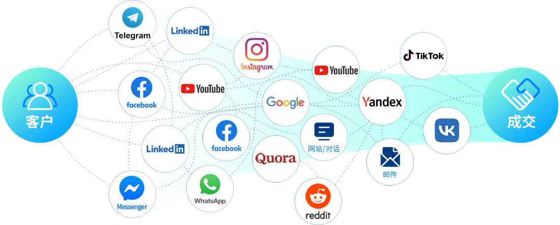 社媒与广告、邮件、即时通讯、网站等工具 一同构成触达客户的完整链条